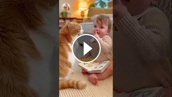 Funny baby teaches a cat how to say MEOW ???????? Cutest baby and cat moment you’ll see today! #shorts #baby #cat #cute #funny